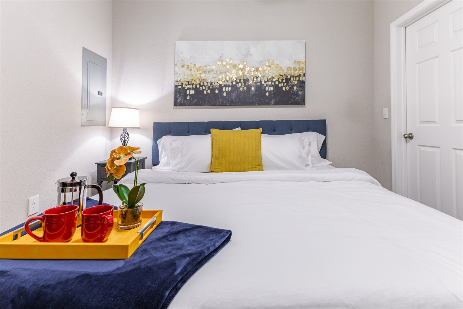 Be our guest at this beautiful 1 bedroom apartment w/ all new furnishings! Perfect for couples, business travelers, or medical travelers!