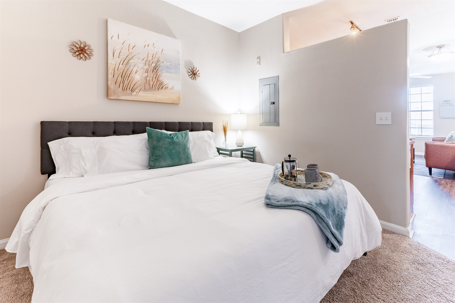 Be our guest at this beautiful 1 bedroom apartment w/ all new furnishings! Perfect for couples, business travelers, or medical travelers!